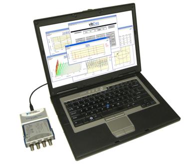 All of our vibDaq systems are based upon commercial-off-the-shelf National Instruments hardware for performance, reliability, low cost and expandability. The Base System can acquire vibration or tachometer data on four channels at sampling rates up to 51.2 kHz. All channels are sampled simultaneously, with AC/DC coupling and IEPE power programmable for each channel individually.